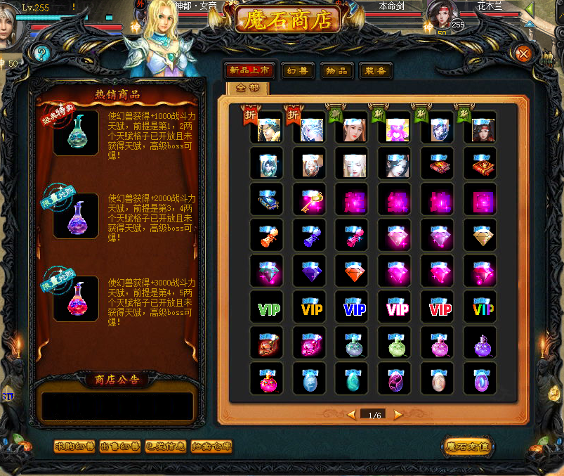 人物255级领取全属性+555555555装备一套, 入包积分2万,积分入包5万、3只20万星会员宝宝3只,100张魔石存折.幻化石50000万 |